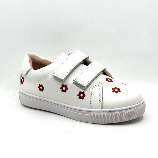 Perroquet White with Red Flower Double Velcro Sneaker